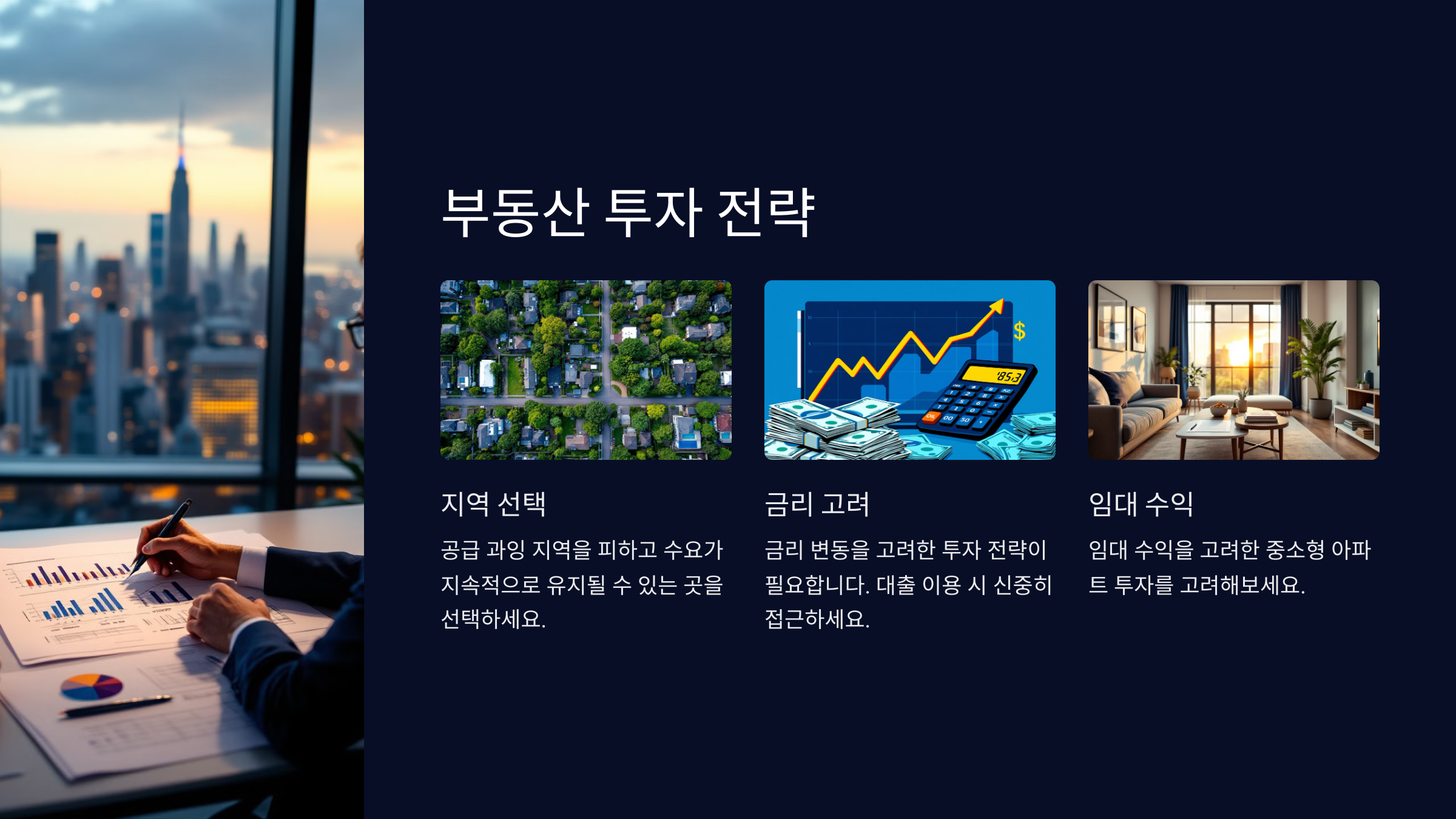 2025년 부동산 시장에서 성공적인 투자를 하기 위해서는 몇 가지 전략을 고려해야 해요. 단순히 가격 상승만을 기대하는 것이 아니라, 장기적인 관점에서 접근하는 것이 중요해요.