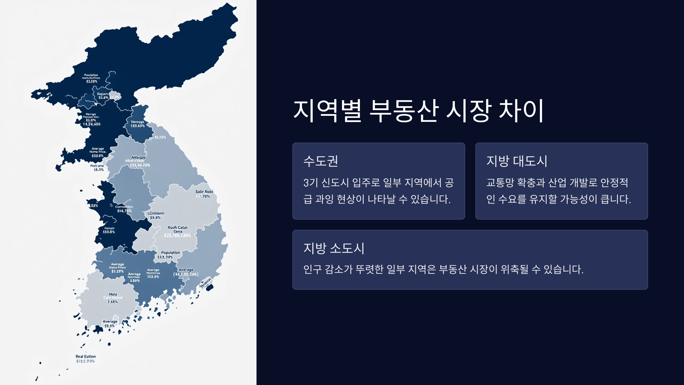 부동산 시장은 지역별로 큰 차이를 보여요. 2025년에도 수도권과 지방의 부동산 흐름이 다르게 전개될 가능성이 커요.