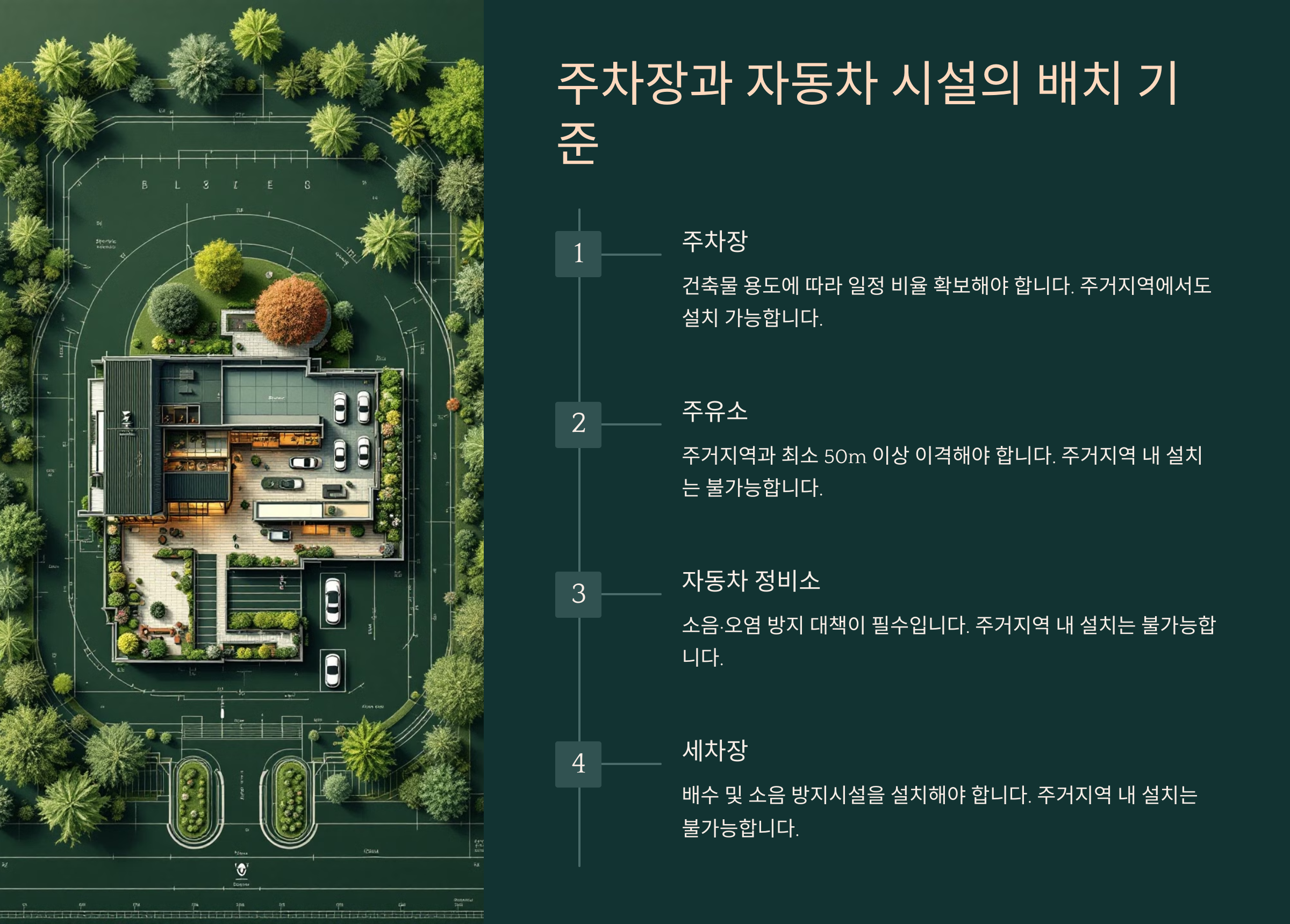 이제 자동차 정비소와 주유소를 건축할 때 고려해야 할 주요 기준들을 살펴볼게요.