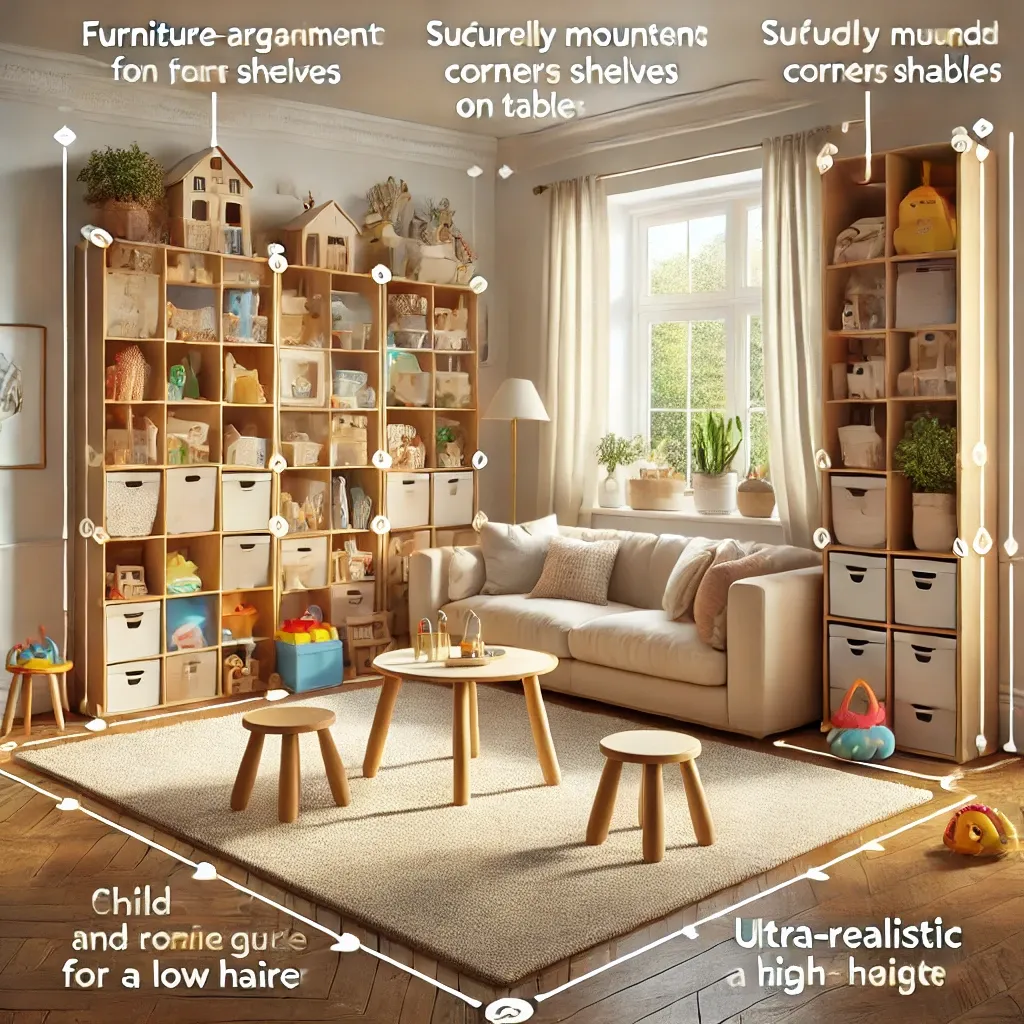 어린이의 안전을 위한 가구 배치의 기본 원칙은 부딪히지 않도록 공간을 확보하고, 위험한 물건이 손에 닿지 않게 배치하는 것입니다. 또한 아이들이 활동하는 공간과 안전을 고려한 구역을 분리해 사고를 예방할 수 있습니다.