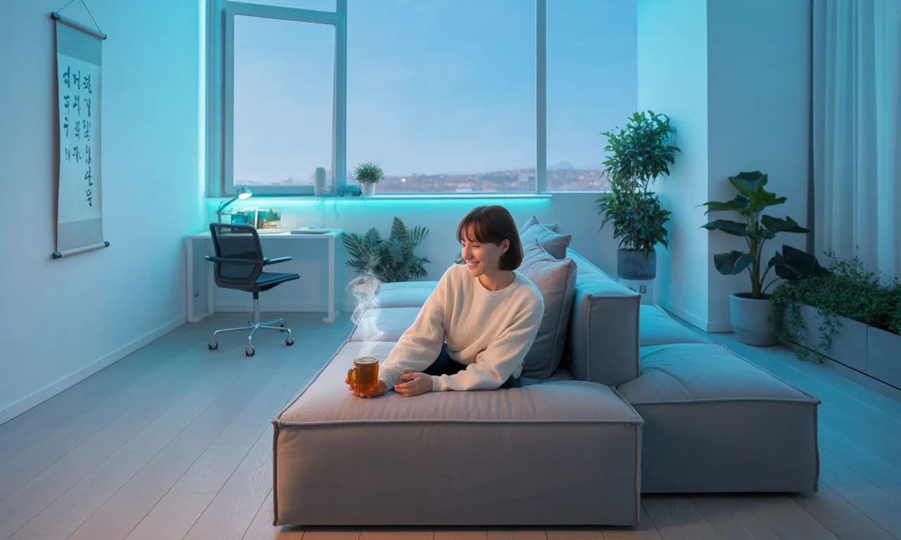 - 식물 또는 간접 조명 활용: 따뜻하고 생기 있는 분위기 조성.
