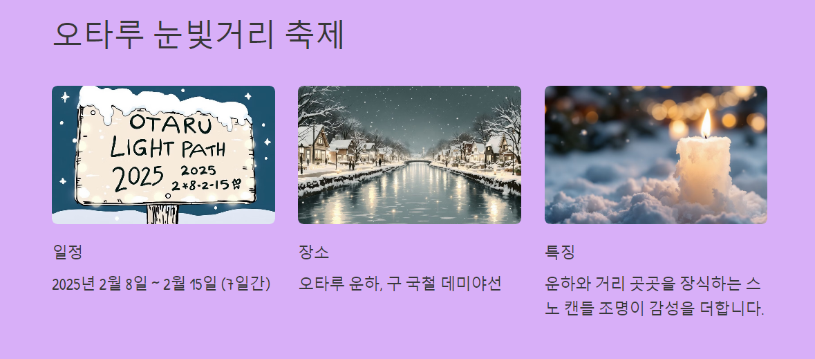 - 추천 루트 2: 삿포로 눈축제 ➡️ 오타루 눈빛거리 축제