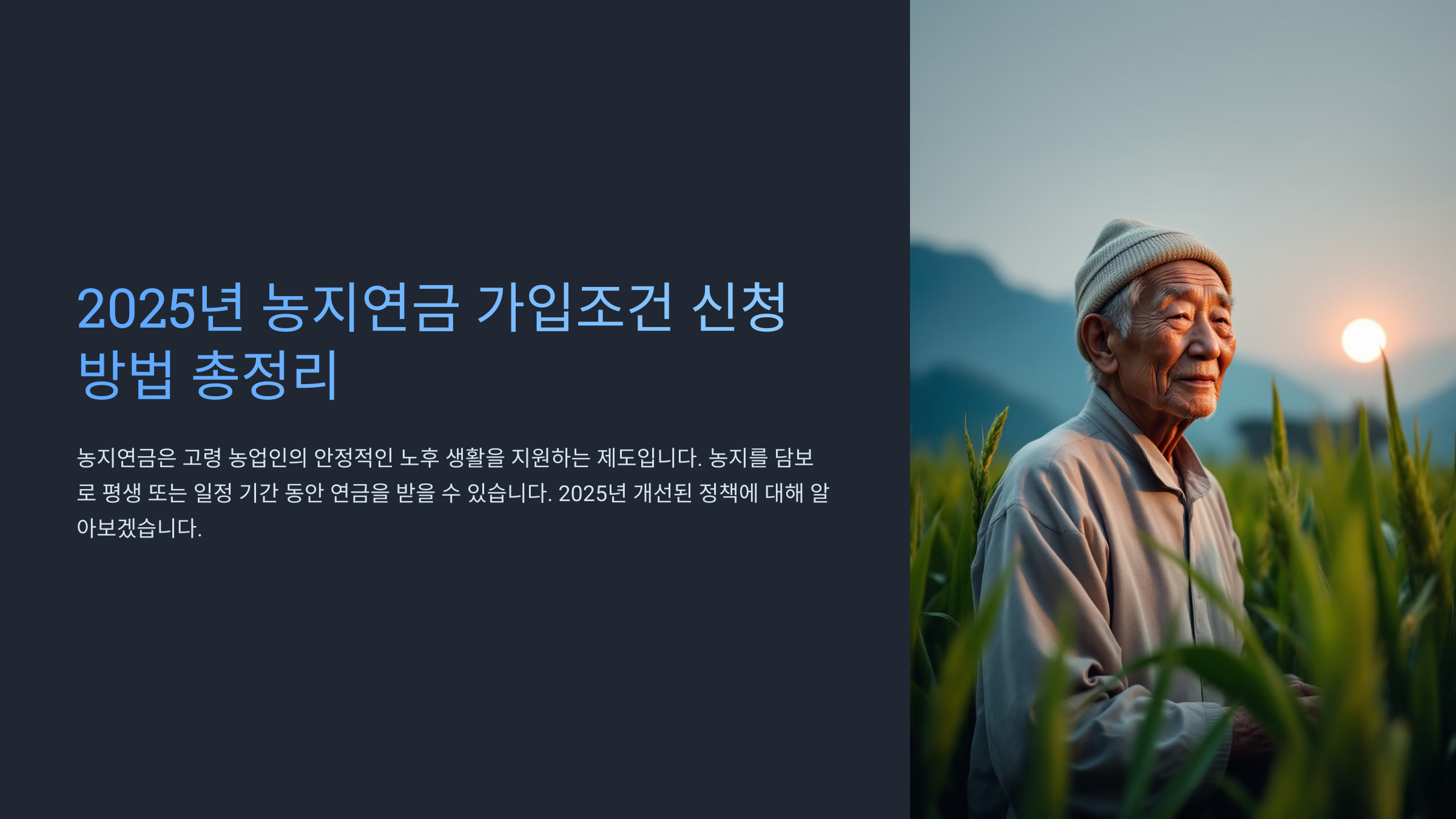 농지연금은 고령 농업인의 안정적인 노후 생활을 지원하기 위한 제도예요. 일정 요건을 충족하는 농업인이 본인 소유의 농지를 담보로 제공하면, 평생 또는 일정 기간 동안 연금을 지급받을 수 있는 제도랍니다. 2025년에는 더욱 개선된 정책이 적용될 예정이라 많은 분들이 관심을 가지고 있어요.