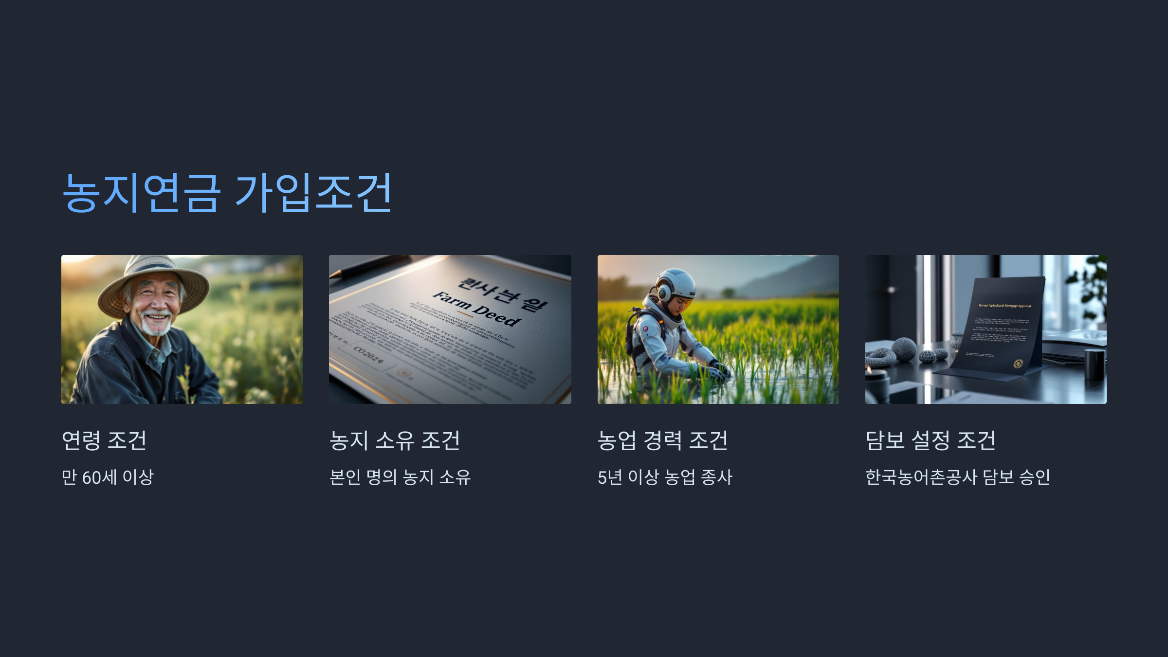 농지연금에 가입하려면 몇 가지 기본 조건을 충족해야 해요. 2025년 기준으로 다음 조건을 만족해야 가입할 수 있답니다.