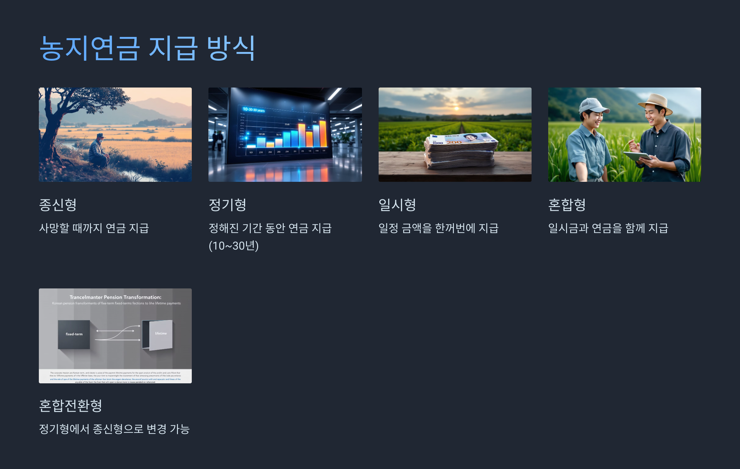 이처럼 농지연금은 단순한 연금 지급을 넘어, 고령 농업인의 생활 안정을 보장하는 강력한 수단이 될 수 있어요.