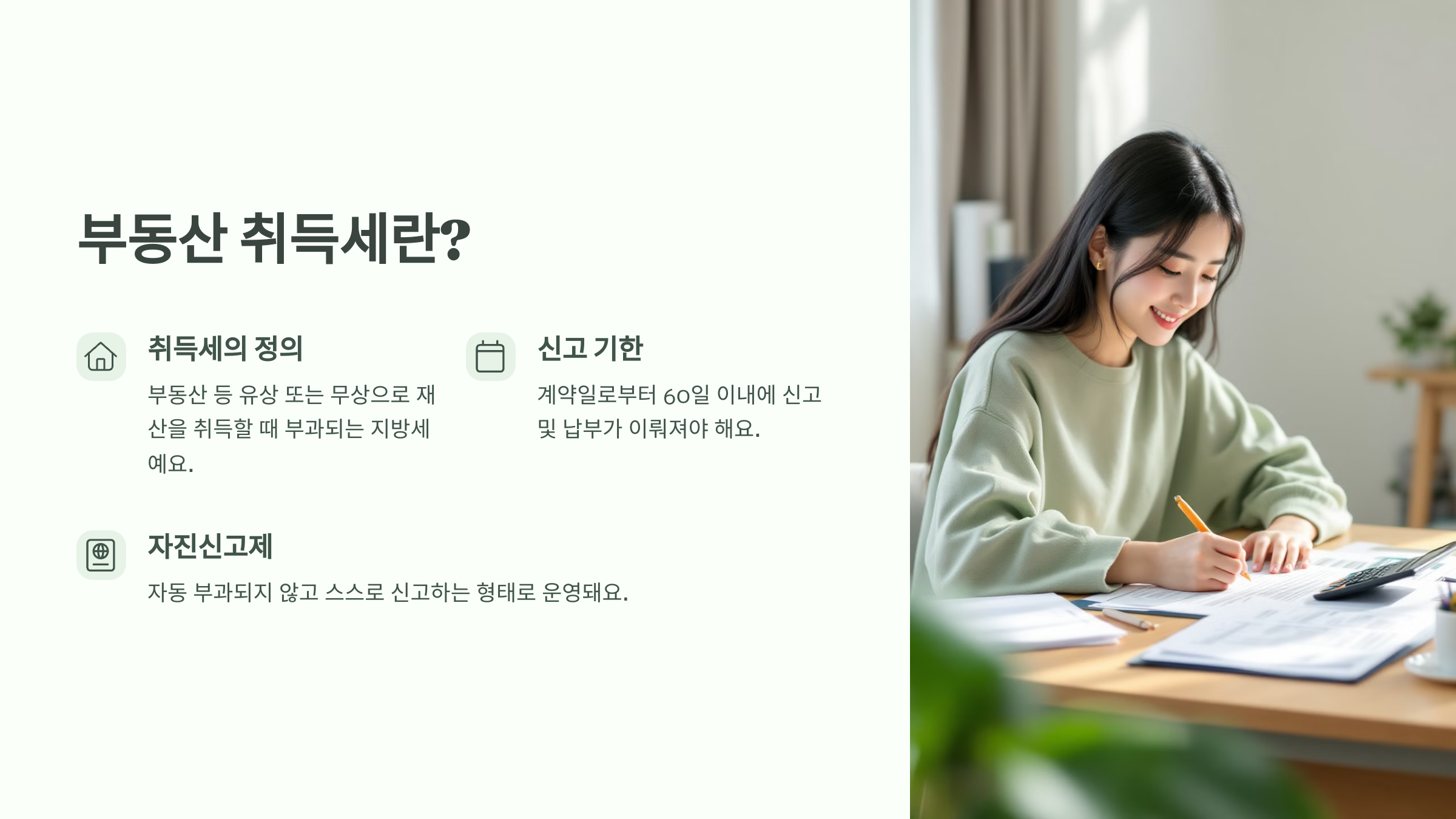 🏡 부동산을 취득하면 누구나 한 번쯤 마주치는 것이 바로 취득세예요. 그런데 계산이 복잡해서 혼란스러운 경우가 많죠. 그래서 준비했어요! 😊