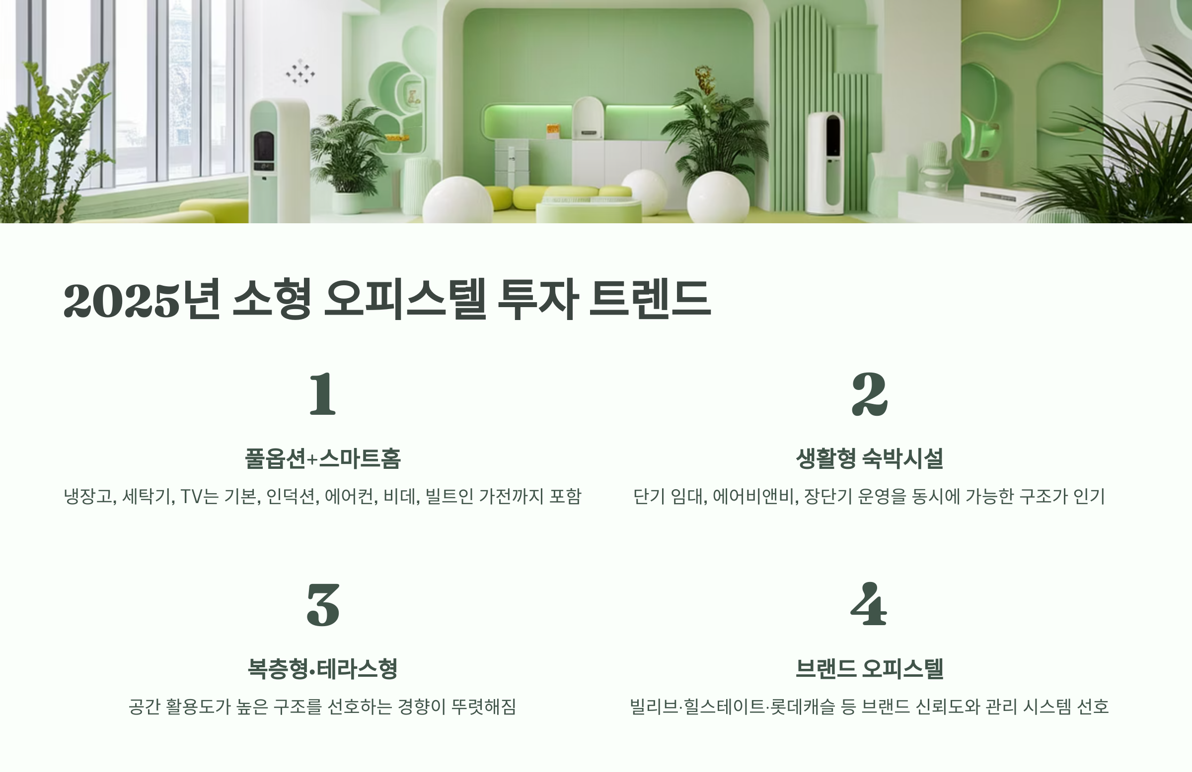 그럼 2025년 현재 오피스텔 시장은 어떤 트렌드가 있는지, 최신 흐름을 다음 섹션에서 알려줄게요!