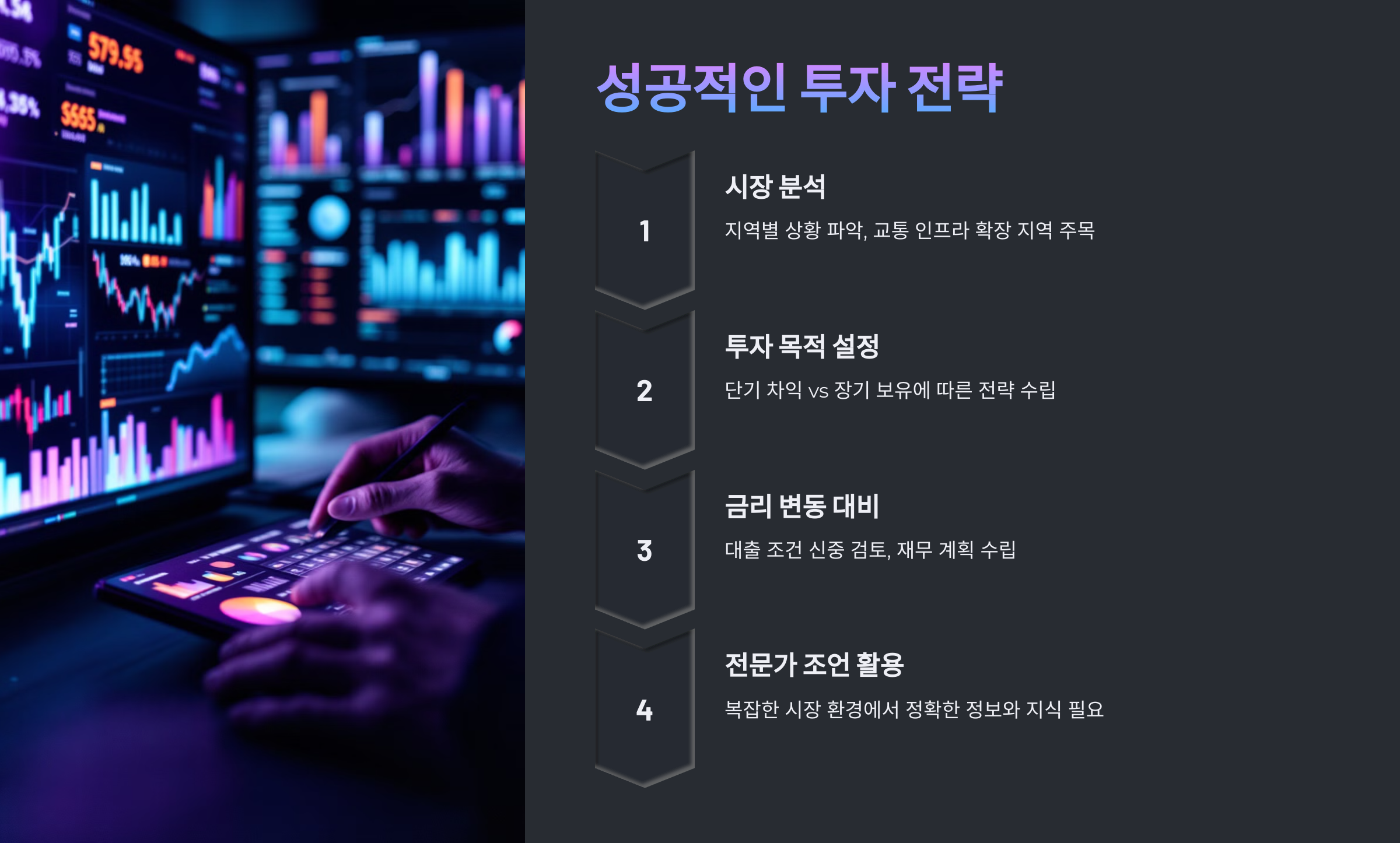 2025년에 성공적인 아파트 투자를 위해서는 철저한 시장 분석과 전략적 접근이 필요해요. 가장 먼저 지역별 시장 상황을 파악하는 것이 중요해요. 특히 교통 인프라가 확장되거나 개발 계획이 발표된 지역은 중장기적으로 높은 투자 수익을 기대할 수 있어요.