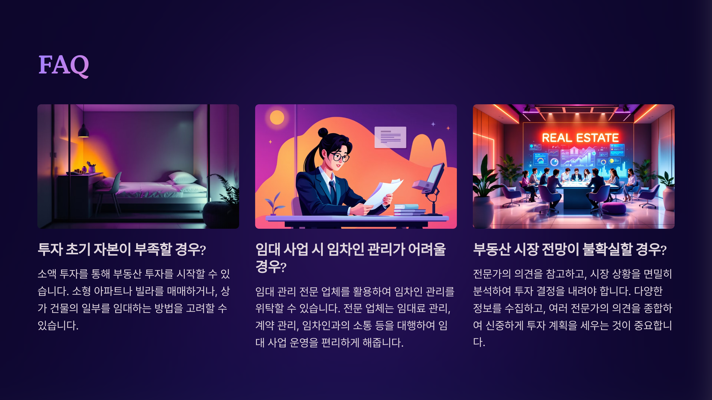 - 매월 임대료 수익으로 안정적인 현금 흐름 확보