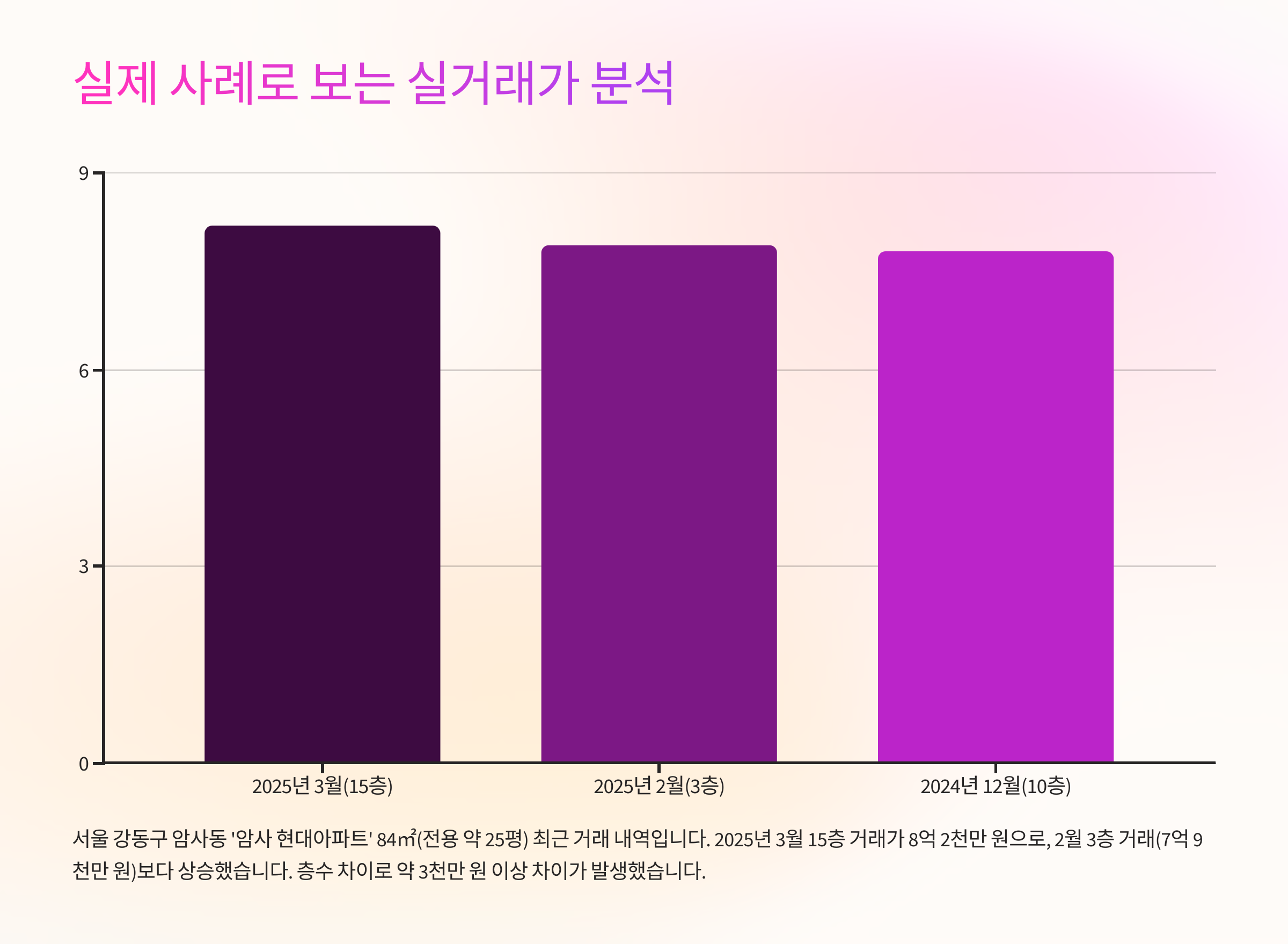 암사 현대아파트 84㎡ (전용 약 25평) 최근 거래 내역을 보면 2025년 2월~3월 사이 가격 변동이 뚜렷하게 나타나요. 여기서 어떤 걸 체크해야 할까요?