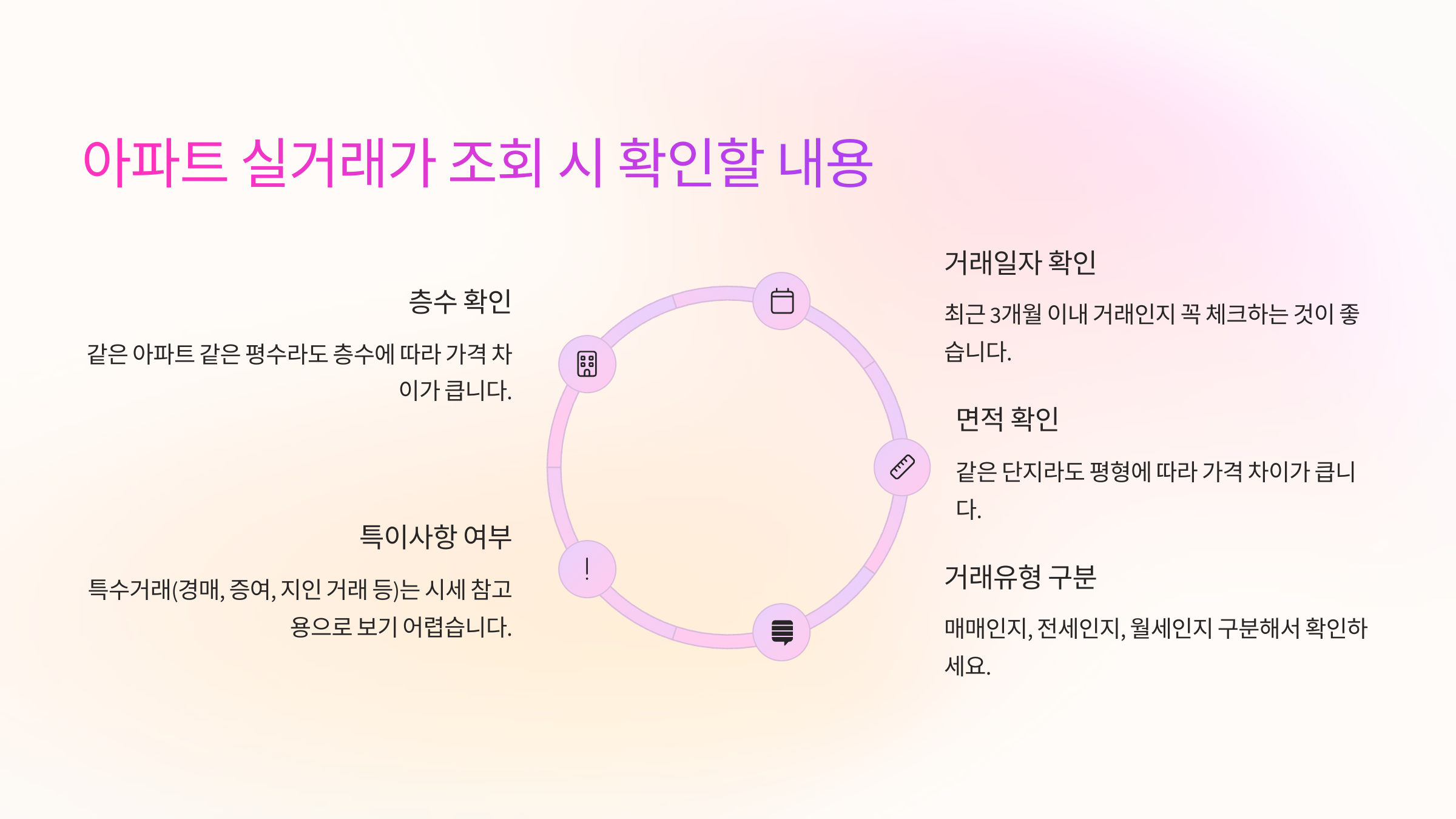 아파트 실거래가를 조회할 때 단순히 '얼마에 거래됐네?'만 보면 안 돼요! 실거래가는 볼 때 꼭 체크해야 하는 핵심 항목이 몇 가지 있어요. 이걸 모르면 잘못된 가격 판단을 할 수 있거든요.