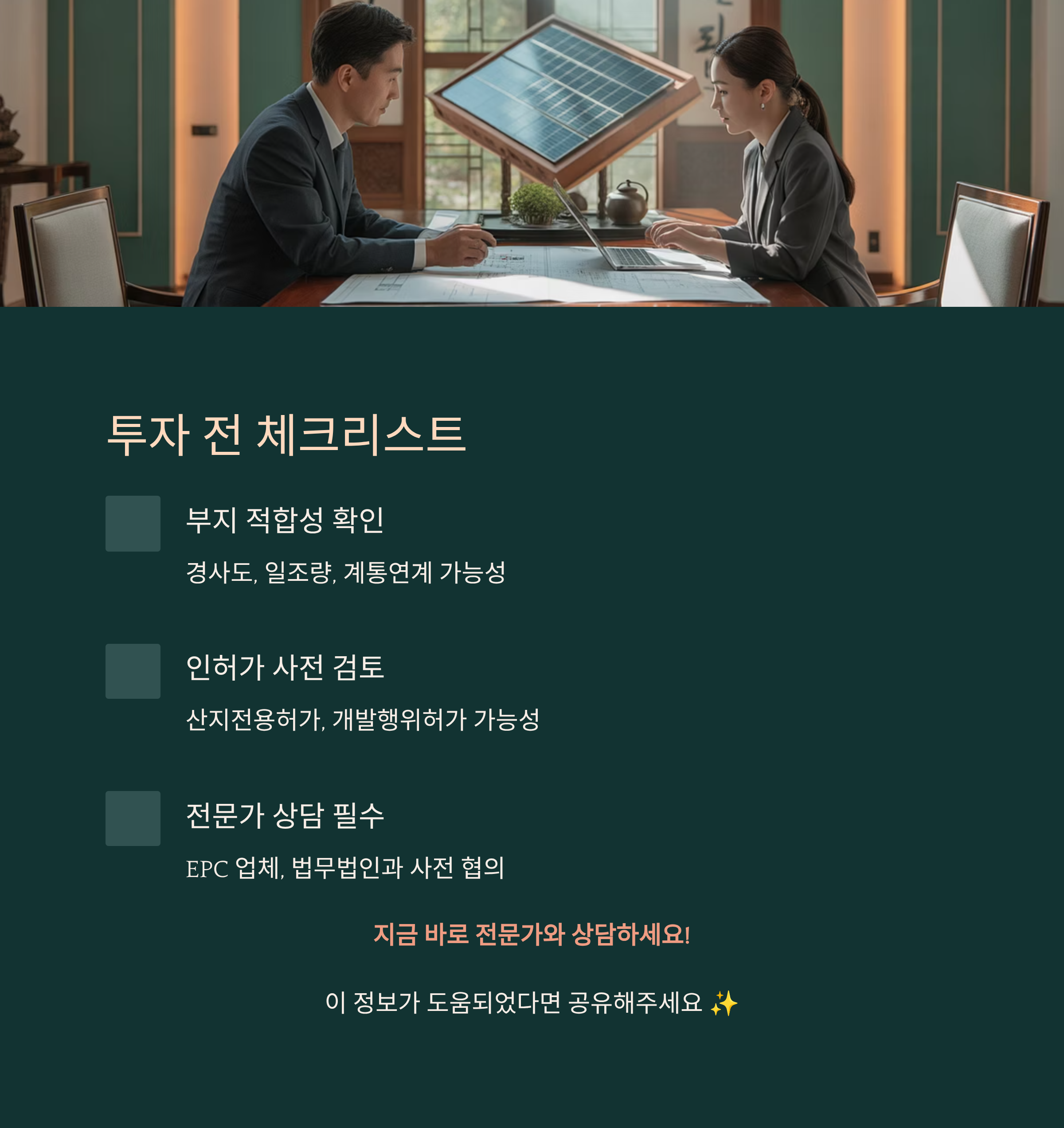 이처럼 태양광을 임야에 설치하는 건 간단해 보이지만 꽤 많은 허가 절차와 조건을 충족해야 해요. 꼼꼼하게 확인하고 진행하면 이후의 수익 창출이 훨씬 수월해진답니다. ⚙️