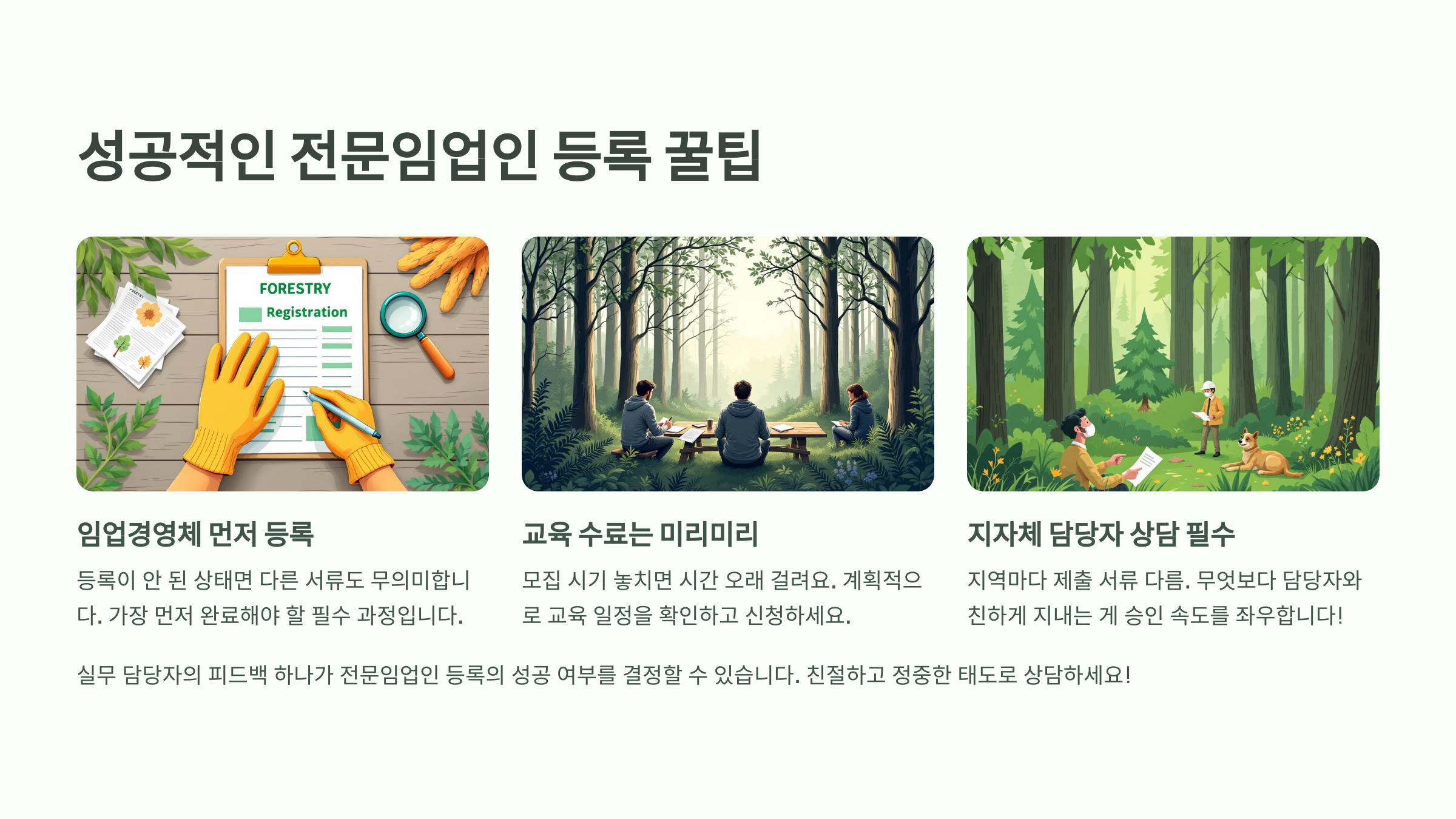 산림자원을 활용한 사업을 계획하고 있거나, 임야를 소유하고 있는 사람이라면 전문임업인 등록은 필수라고 할 수 있어요. 그만큼 실질적이고 구체적인 혜택이 많답니다.