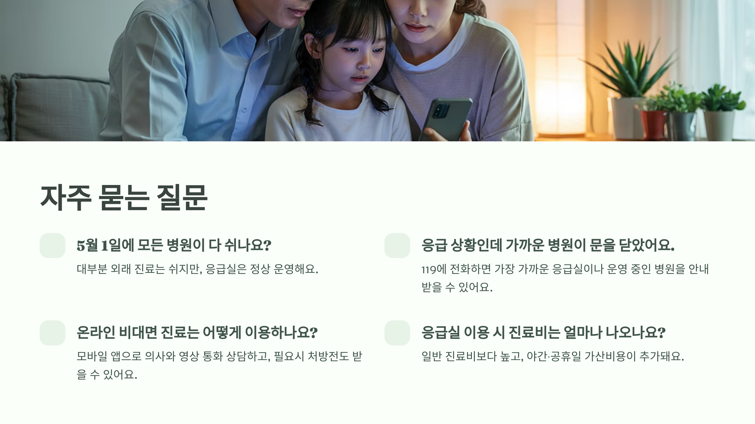 이렇게 여러 대체 진료 방법을 알아두면 근로자의날에도 건강 걱정 없이 지낼 수 있어요! 🎈 이제 마지막으로 사람들이 많이 궁금해하는 질문들, FAQ로 마무리할게요!